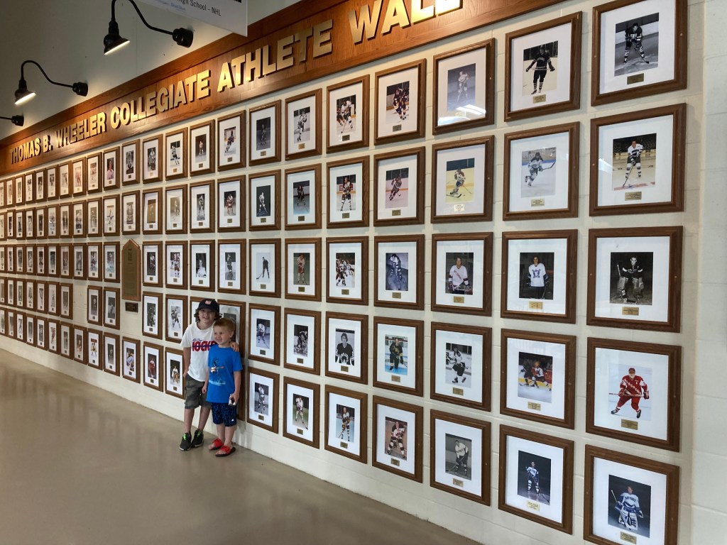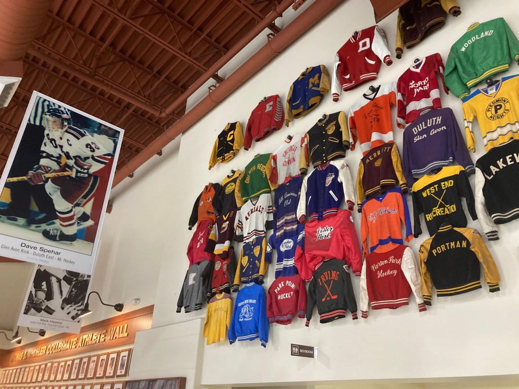 The Heritage Center is like a museum, and I could have spent an hour reading and looking at everything. It’s a striking wall of photos of the collegiate players the city has produced. Perhaps the most impressive idea I saw was the star players’ banners had their local park or rink they grew up playing/skating on. If you look at the banner by the jackets, Dave Spehar, Mr. Hockey 1996, grew up skating at Glen Avon Park. I didn’t take a picture of it, but the north wall has team photos of the squirts to bantams, and all of them were taken at dusk with the lift bridge behind them. I’d imagine touches like that help to instill a great deal of pride in your town, your program, your team, and yourself as a young player as a product of that town.